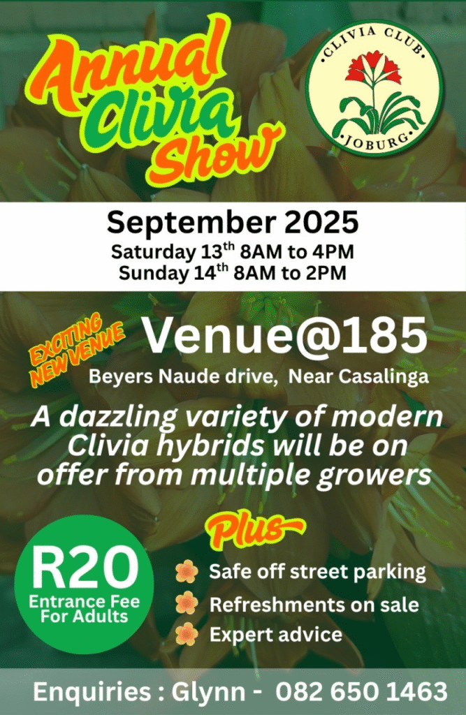 The next meeting of the Joburg Clivia Club takes place on the 18th of October 2025 at the Random Harvest Nursery at 14h00. Review of Spring Show regarding venue and considerations for 2026. Prize giving Read more