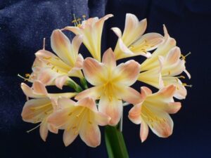 Description: Registered Cultivar. This is a selection by Pieter Saayman & Michael Holt of a plant from Bertie Guillaume’s breeding. It produces flowers that are creamy white with tepals “”smudged”” with colour ranging from pink to light orange (based on Cape Colour Chart). The name is derived from the first flowering which was out of season in autumn and the blush colouration.