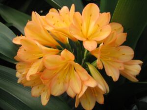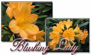 Description: Registered Cultivar: A unique colour form selected by Victor Murillo out of the trademarked VICTORIAN PEACH line. The plant produces peach flowers with a darker colour edge to the tepals. It produces a ed outefan shaped growth of very broad foliage. It was named because of the well defined marking of each flower conjuring up the image of a blushing lady.