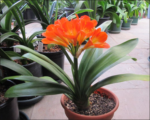 Description: a dwarf selection obtained by Conway from the nursery trade in America. It is a small plant carrying the flowers above the foliage. 14 florets of mid orange, white throated flowers per umbel Flowers are tulip shaped and petal edges are incurved. It is self fertile. The plant is prone to fungal and bacterial problems and leaves frequently have dried brown blotches. This has not been noticed in the offspring.